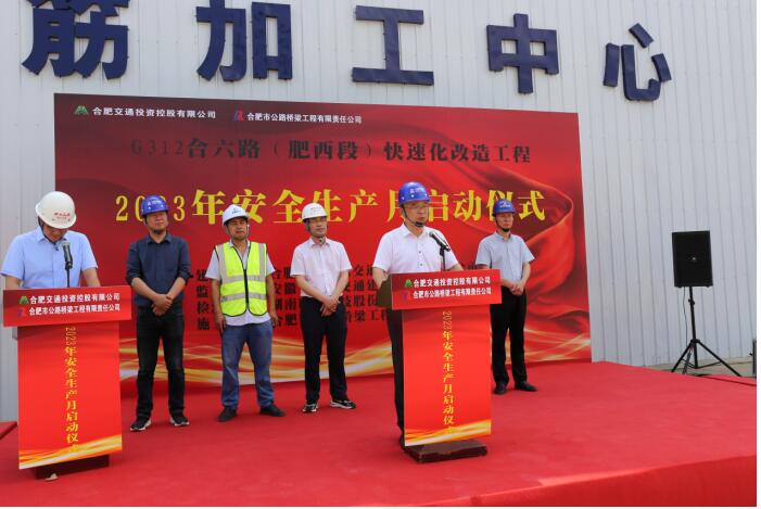 星空外围线上网站 > 专题专栏 > 详细信息6月1日上午10时,合肥路桥G312合六路(肥西段)快速化改造工程2023年“安生产全月”顺利启动。合肥路桥支部书记、执行董事杨枫出席活动并作动员讲话,合肥交投合六项目公司董事长、总经理陈风明出席活动并宣布2023年“安全生产月”活动正式启动。