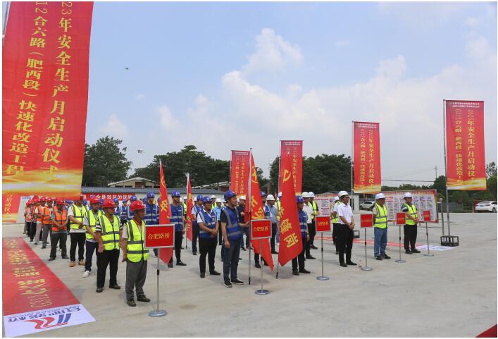 合肥交投合六项目公司副总经理周恒星主持活动仪式。启动仪式上,陈风明代表建设单位向项目青年突击队授旗,杨枫代表施工单位向项目党员先锋岗授旗,项目经理孙巍代表项目部发起“安全生产月”活动倡议。