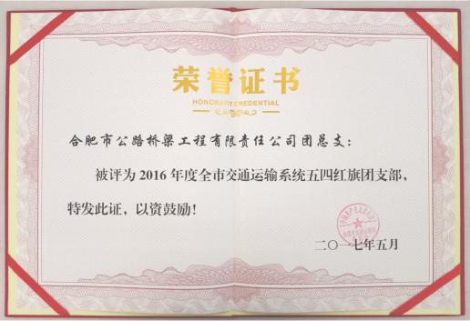 合肥路桥公司团支部自成立以来,在公司党委及上级团委的正确领导下,以服务企业经济发展为中心,坚持党建带团建,以“凝聚青年、服务工作”为宗旨,紧密结合交通建设工作实际,以倡导职业文明为核心,建立“青年就业创业见习基地”,积极开展“青年文明号”、文明交通等一系列活动,并在项目部成立“青年突击队”,充分发挥青年骨干的生力军和排头兵作用,确保大建设工程保质保量完成,并取得显著成绩,2016年,公司先后荣获合肥市市政工程行业优秀企业、合肥市建筑业50强企业及优秀施工总承包企业等荣誉称号。
