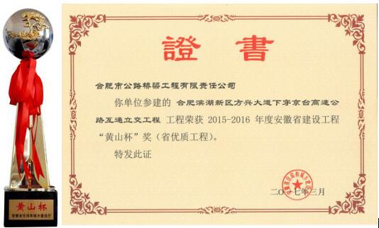 建设期间,合肥路桥秉承“诚为本 质为先”的经营理念打造了又一精品示范工程,并荣获安徽省公路交通优质工程一等奖和安徽省建设工程“黄山杯”奖(省优质工程)。