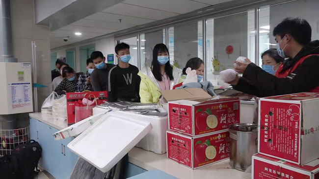 父母对孩子的爱,总寄托在新年的祝福里,希望孩子们健康成长,平凡友善。志愿者们把心意藏在新鲜的水果里,苹果寓意着平平安安,橙子寓意着心想事成。祝愿他们早日康复,重新过上幸福的生活。